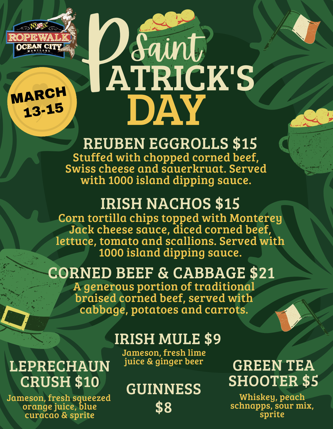 $6 Crushes $4 House Wines, Rail Mixed Drinks, and Adult Slushies $2.50 Coors Light and Miller Lite Drafts $2 OFF All Drafts 1/2 OFF Wings