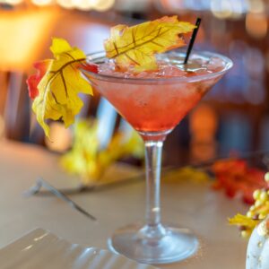 Crown Apple whiskey, butterscotch schnapps, apple cider, garnished with a caramel apple lollipop