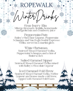 Ring in the New Year at Ropewalk OC! Enjoy party favors and a champagne toast at midnight. Our special dinner menu and full regular menu will be available all evening. (Daily specials not available.)