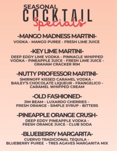 All specials are for dine-in only, no carry-out, and subject to availability for event dates, holidays and/or holiday weeks and weekends.